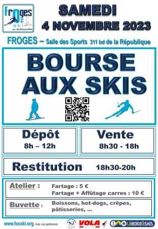 Le FOCSKI organise sa bourse aux skis le samedi 4 novembre 2023 à la salle des sports de Froges.